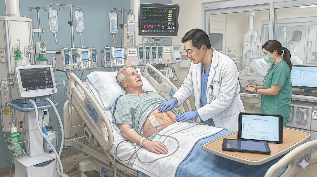 O diagnóstico da fístula pancreática exige um cirurgião com altíssimo índice de suspeição clínica. O suco pancreático ativado é extremamente cáustico e desencadeia uma resposta inflamatória sistêmica rápida.