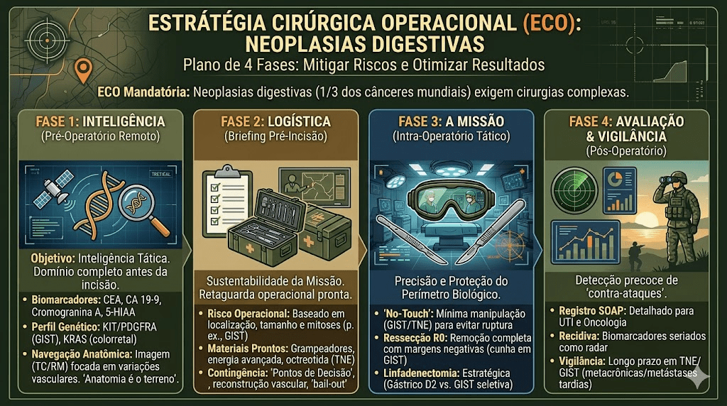 A cirurgia digestiva de alta complexidade é um exercício de ética e estratégia. Ao incorporar a disciplina e o planejamento rigoroso das Operações Militares Especiais, o cirurgião deixa de ser um mero executor técnico para se tornar um estrategista da cura. A missão nunca é apenas remover um órgão; a missão é restaurar a homeostase e a dignidade do paciente com a menor agressão possível. Em um país com a diversidade epidemiológica do Brasil, onde o câncer colorretal é o segundo mais comum em mulheres e o terceiro em homens, a precisão tática não é um diferencial — é uma obrigação de sobrevivência.